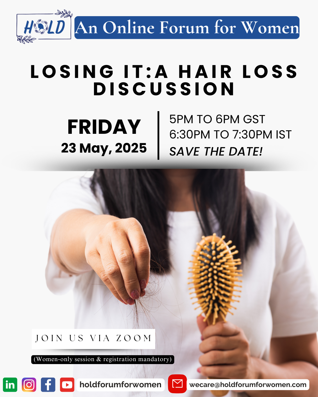 HOLD Forum for Women is delighted to invite Ms. Saraswati Srividya, a Hatha Yoga teacher with expertise in prenatal, postnatal, Vinyasa, and children’s yoga; Master of Yogic Science (M.Sc.) to join us for our upcoming session: "Women's Wisdom: Yoga for Navigating Hormonal Changes" Don’t miss this opportunity to meet and interact with our esteemed guest....