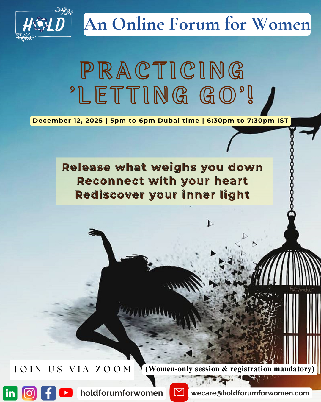 HOLD Forum for Women is conducting an empowering session titled: “Practicing ‘Letting Go’ ” Join us for an insightful conversation — a gentle space to pause, release, and reconnect. 🗓...